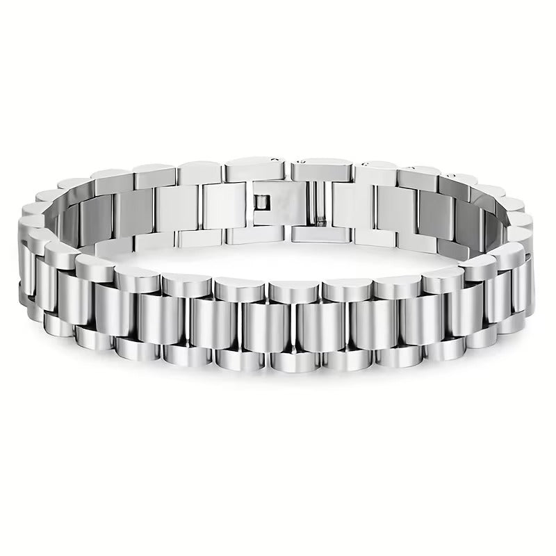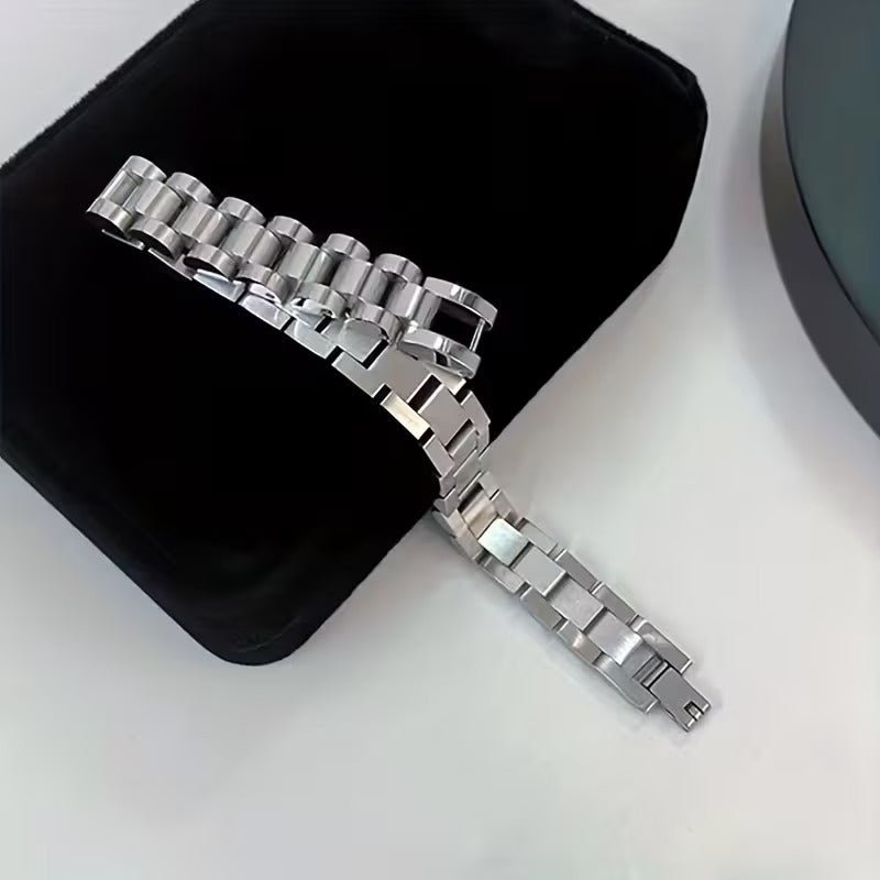 Add a bold, industrial edge to your jewelry collection with the 304 Stainless Steel Hip-hop Watch-Style Bracelet. Designed with a sophisticated link structure reminiscent of luxury watch bands, this bracelet is the perfect statement piece for those who appreciate high-impact fashion and durable craftsmanship.
